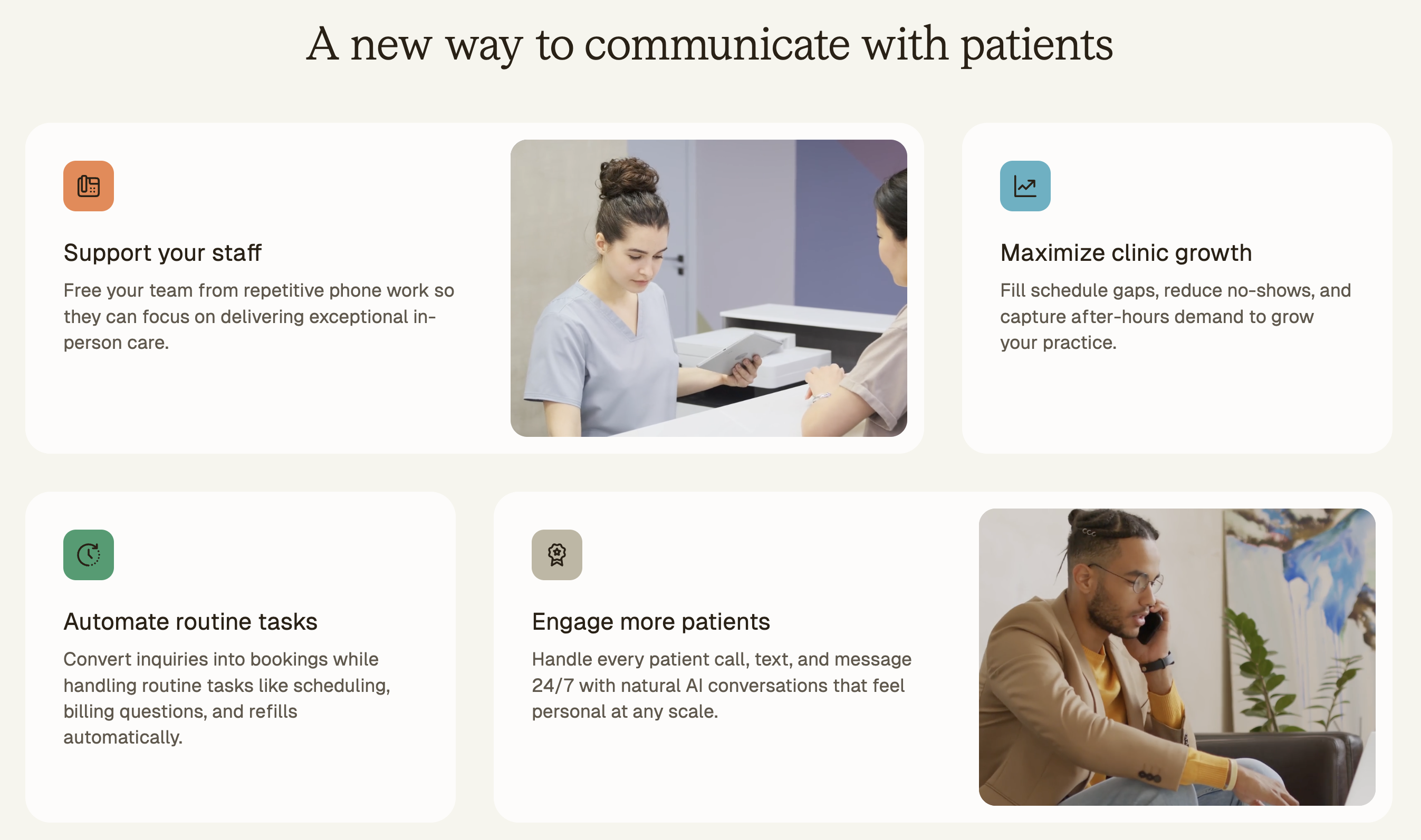 Patient-facing voice AI for scheduling, referrals, refill requests, and more.