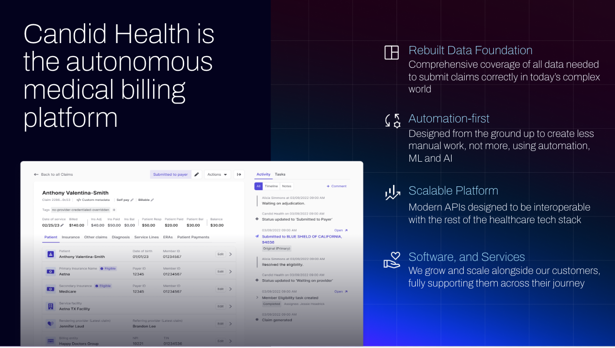 Candid Health is the revenue cycle automation platform that’s rebuilding medical billing from the ground up, eliminating unnecessary human intervention though a touchless experience. Companies like Tia, Nourish, Talkiatry, and Cortica trust Candid as their billing partner to prevent costly mistakes and make more proactive, informed business decisions. Healthie’s integration with Candid Health lets provider organizations streamline billing through seamless integration across clinical and financial data. The result is increased collections at a lower cost – Candid’s customers achieve 95% touchless claim rates and 97%+ payer net collection rates with 40% less manual work.