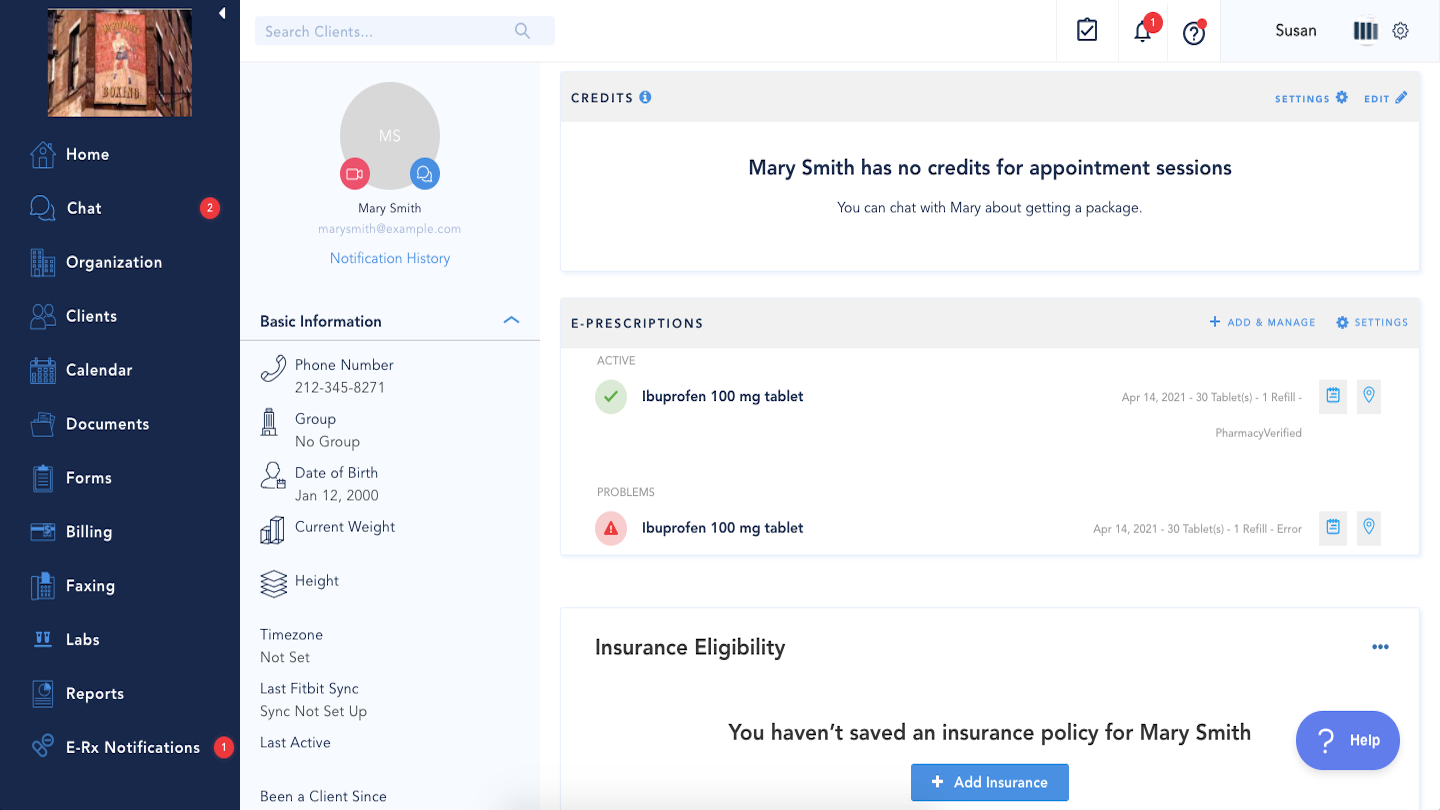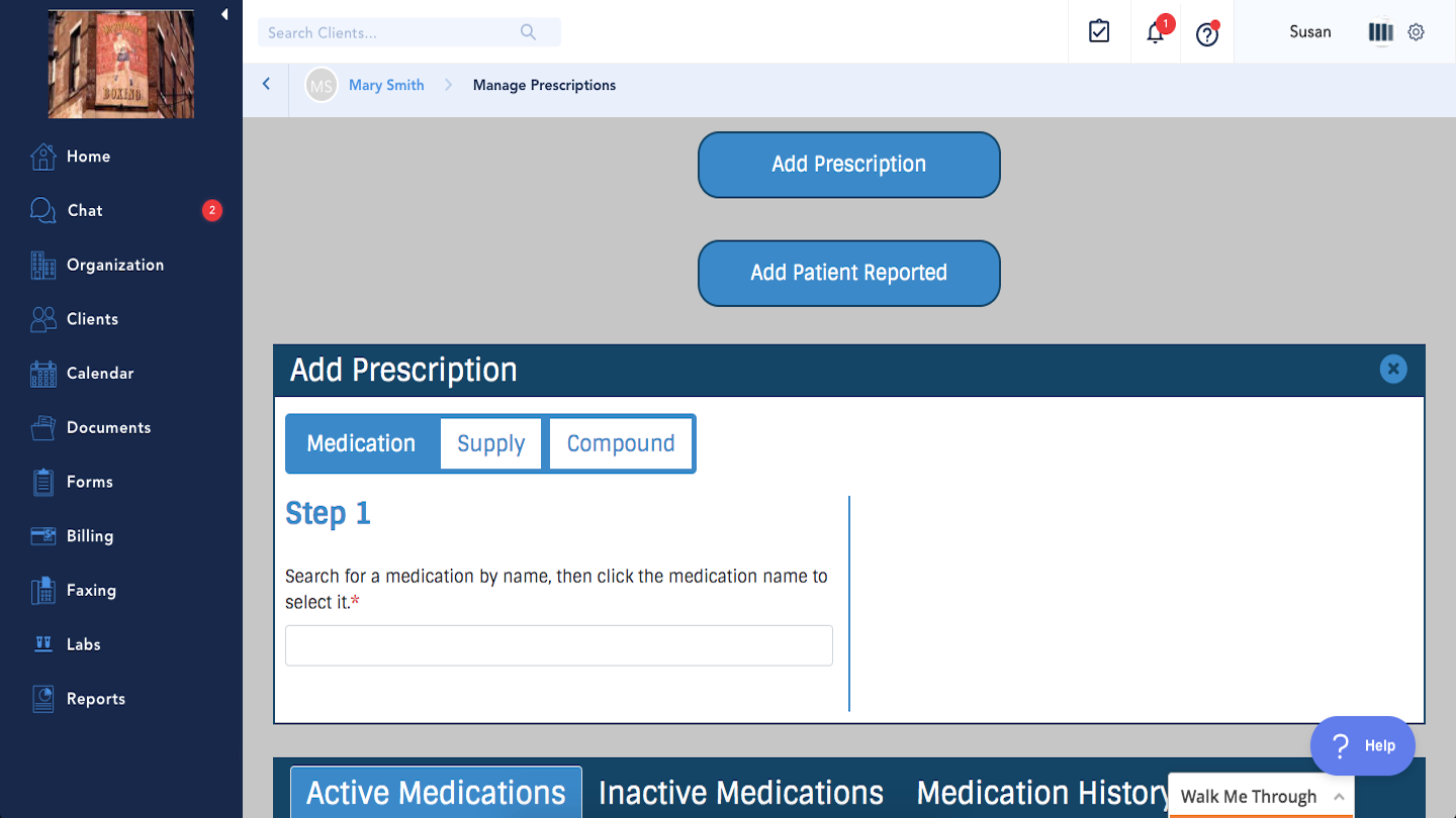 - Enter Rx information and a pharmacy of choice to a client’s profile within the Healthie platform.