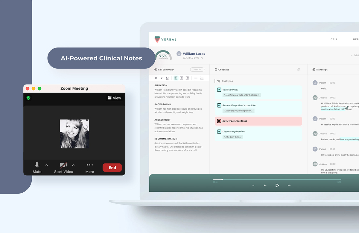 Verbal analyzes every interaction and generates detailed reports on patient sentiment, talk-to-listen ratio, compliance and more, offering providers the insights they need to drive care quality.