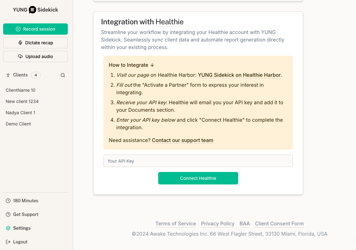 Easily connect your Healthie account with YUNG Sidekick to make session documentation faster and smoother, letting you focus more on client care.