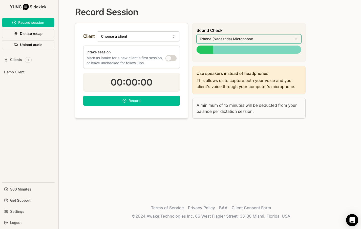Clients can provide consent in any written form. For your convenience, we offer a sample consent document you can use. Consent is only required if you’re recording the session. If you’re simply dictating a recap — your own summary of the session — no client consent is needed.